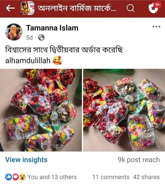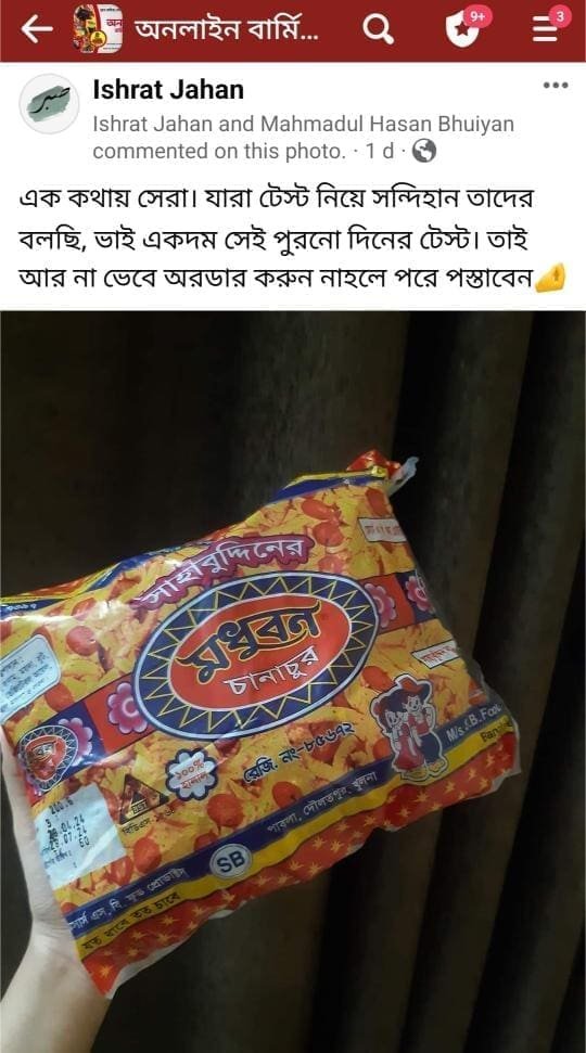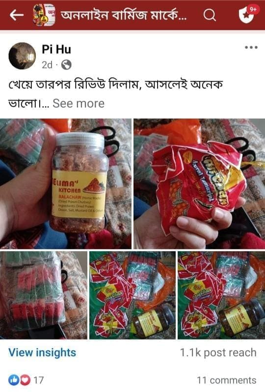 "অনলাইন বার্মিজ মার্কেট" দেশের সবচেয়ে বড় বার্মিজ, দেশি-বিদেশি পন্যের ই-কমার্স প্ল্যাটফর্ম। আমাদের কাছে পাবেন অরিজিনাল সব আচার, চকলেট, প্রসাধনী, শুটকি ও ড্রাই ফ্রুটস ইত্যাদি। ক্রেতাদের সন্তুষ্টি নিশ্চিত করতে সাশ্রয়ী মূল্যে, দ্রুত ডেলিভারি এবং নির্ভরযোগ্য সেবা দিয়ে আমরা এগিয়ে চলছি ইনশা-আল্লাহ! আমাদের পণ্যের মান এবং বৈচিত্র‍্যের কারণে আমরা লাখো ক্রেতার প্রথম পছন্দ হয়ে উঠেছি। আপনার প্রয়োজন অনুযায়ী সেরা মানের পণ্য কেনাকাটা করুন সহজে ও ঝামেলাহীনভাবে। আমাদের সাথেই থাকুন, সেরা পণ্য ও সেবার অভিজ্ঞতা উপভোগ করুন!
